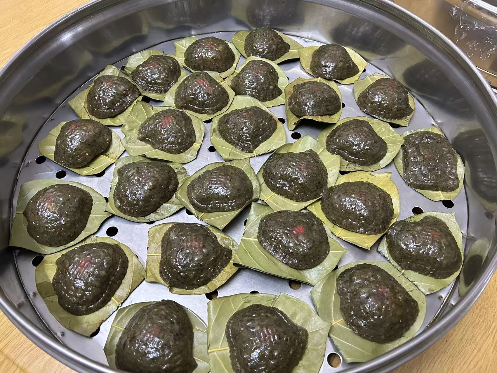 在茂名高州的农村,家家户户过年做糯米糍粑——籺。这是拜年最有诚意的礼品,也将填满年后返城的游子抚慰乡愁的行囊。村民梁女士说,做籺是这里的习俗,将艾叶碾成粉末混入糯米粉,黄糖放锅里煮融再浇进粉里一起。岁岁年年,鞭炮在门前屋后回响,离家的人在此刻团圆。人来人往,不变的是风土人情,是这些游子行囊里的鸡和籺。